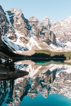 Moraine Lake reflections in the Rocky Mountains, Canada | Photographer: Samantha Peddle